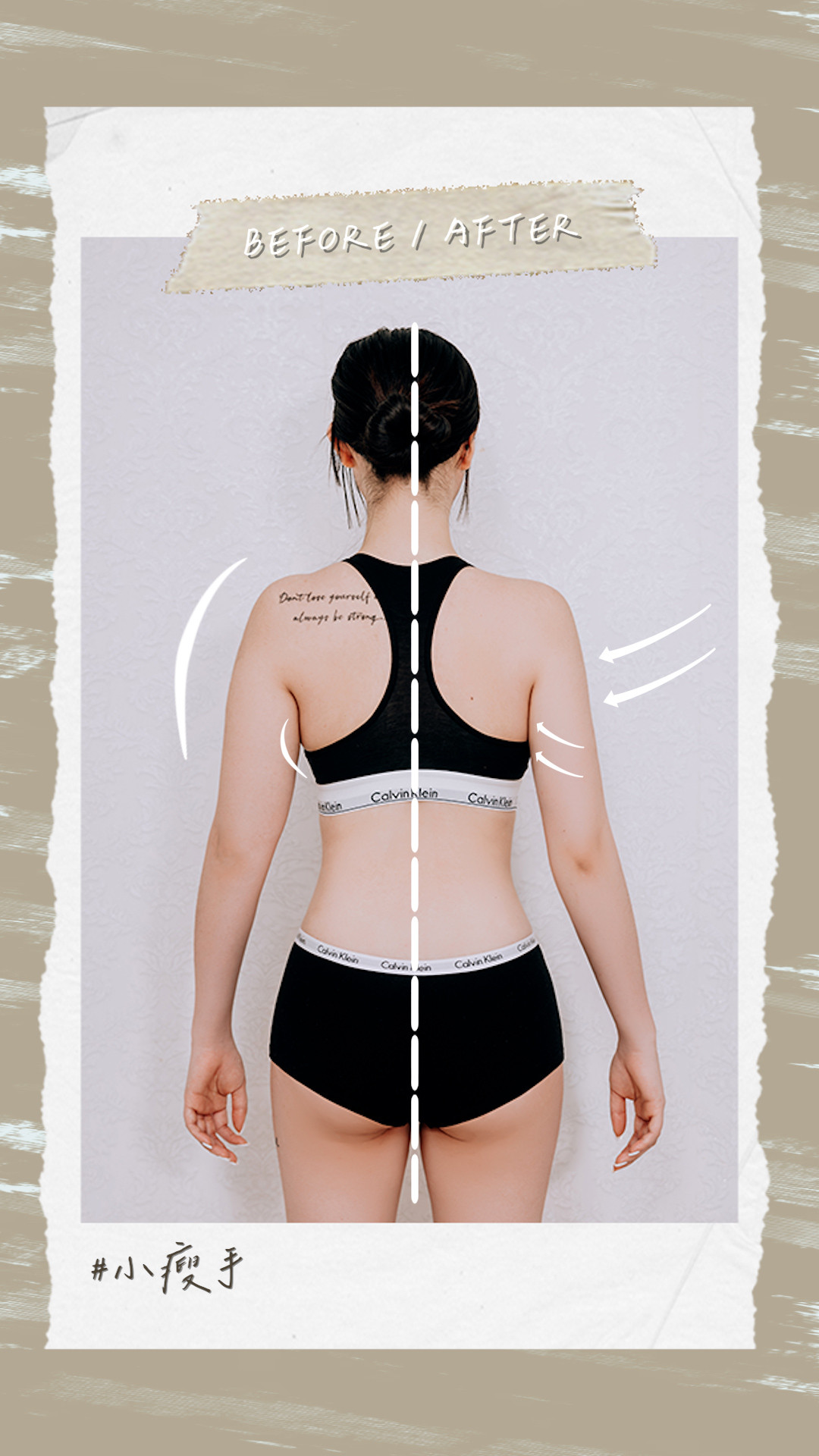 「小瘦手」課程運用科技音波+電波,可以快速改善手臂內側脂肪堆積、外側肌肉發達、腋下腫脹、副乳的問題。
